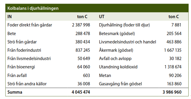 I rapporten Koll på kolet, som jag nyligen färdigställde åt KSLA räknar jag på flödet av kol (C) i det svenska jordbruket och livsmedelssystemet. Om man tänker i termer av livsmedelsförsörjning är kol eller kalorier mer intressanta mått än kronor eller kg. Ett kg vegetabilisk olja, ett kg vindruvor, ett kg sojabönor eller en liter vin har väldigt olika näringsvärden och pris. Visst missar man viktig info också med kol eller kalorier, men betydligt mindre än med de andra måtten.